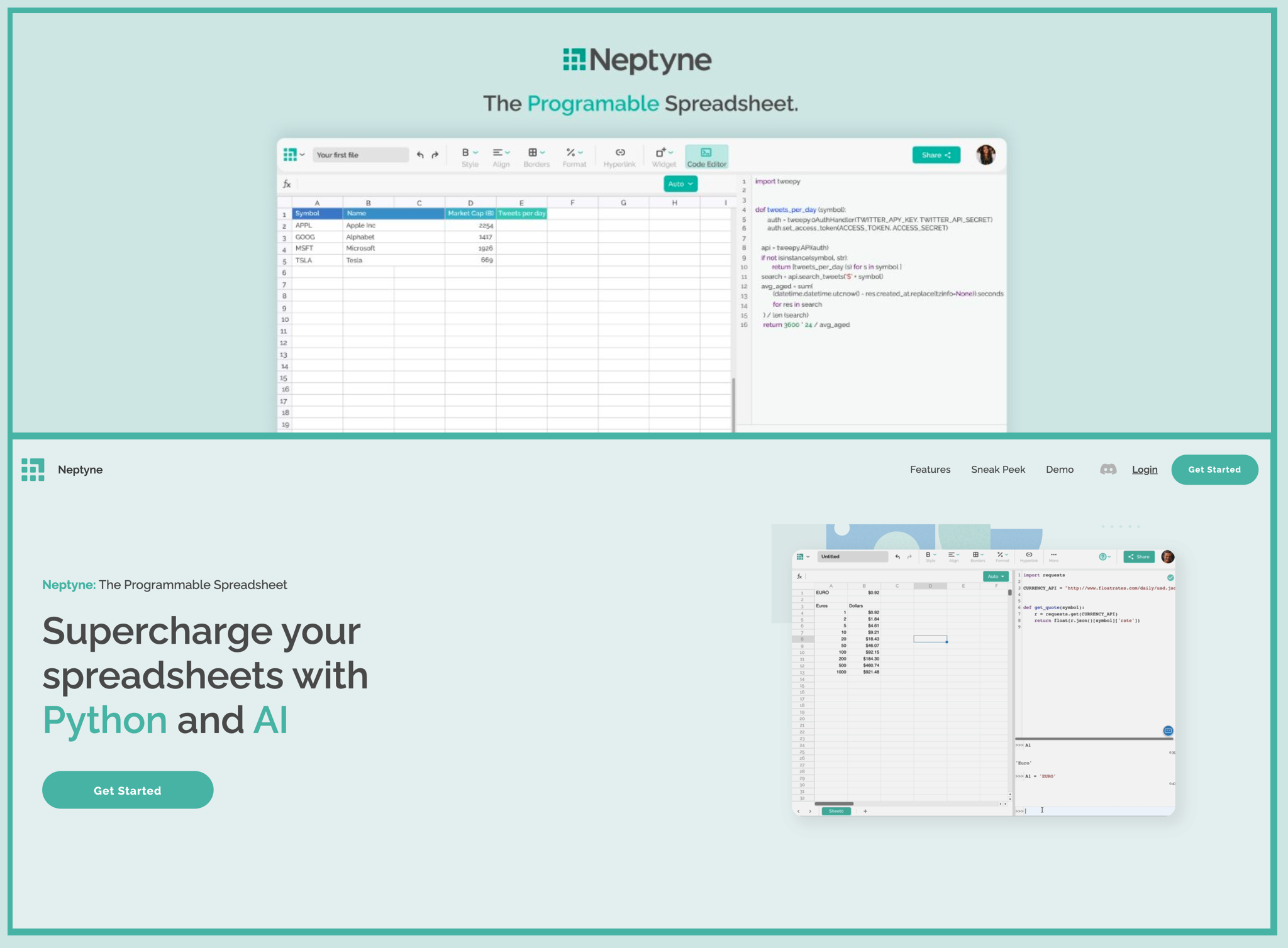 2️⃣ Neptyne - "The programmable spreadsheet."