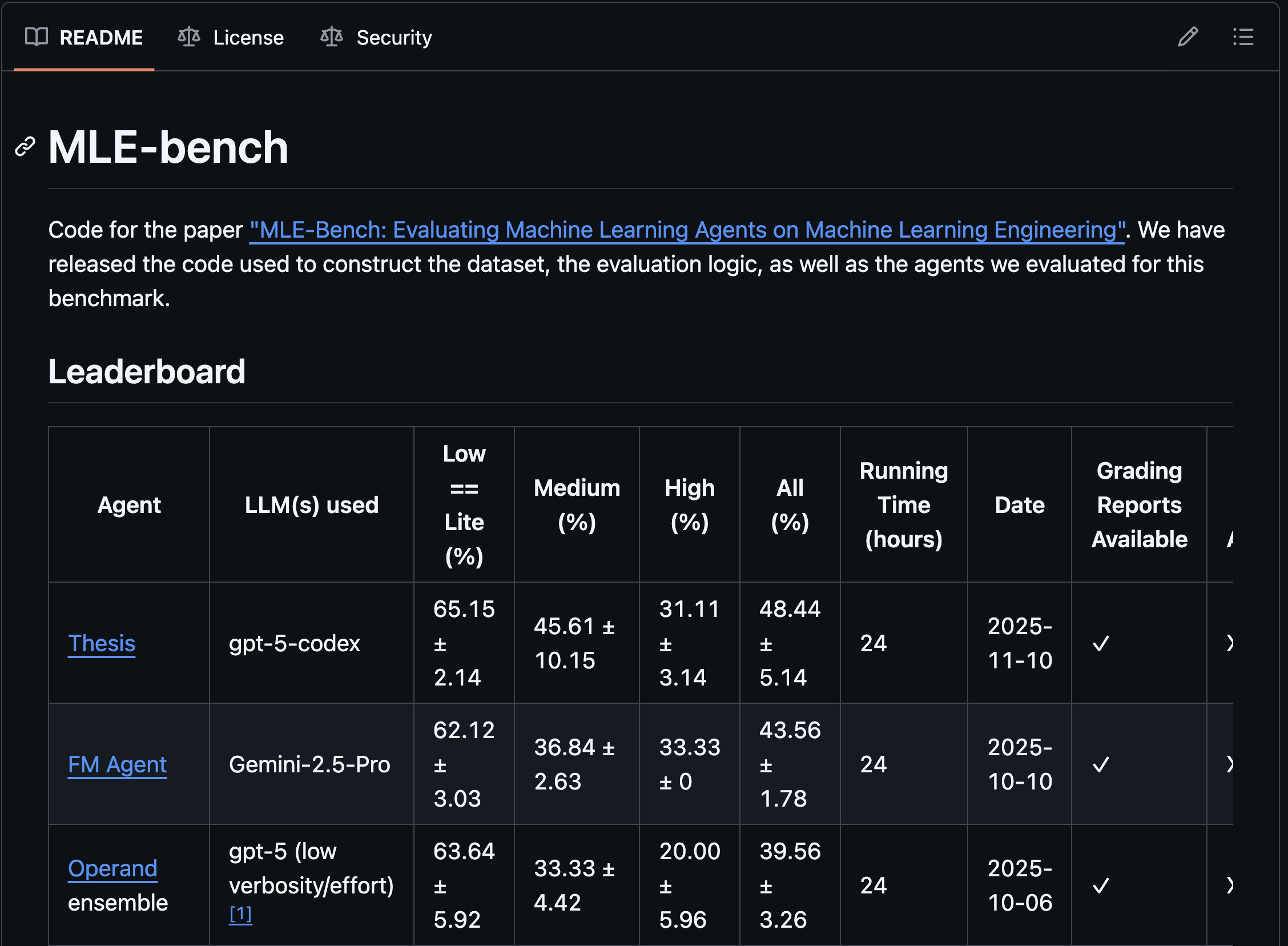 Thesis is state-of-the-art on OpenAI’s Machine Learning Engineering benchmark (MLE-Bench).