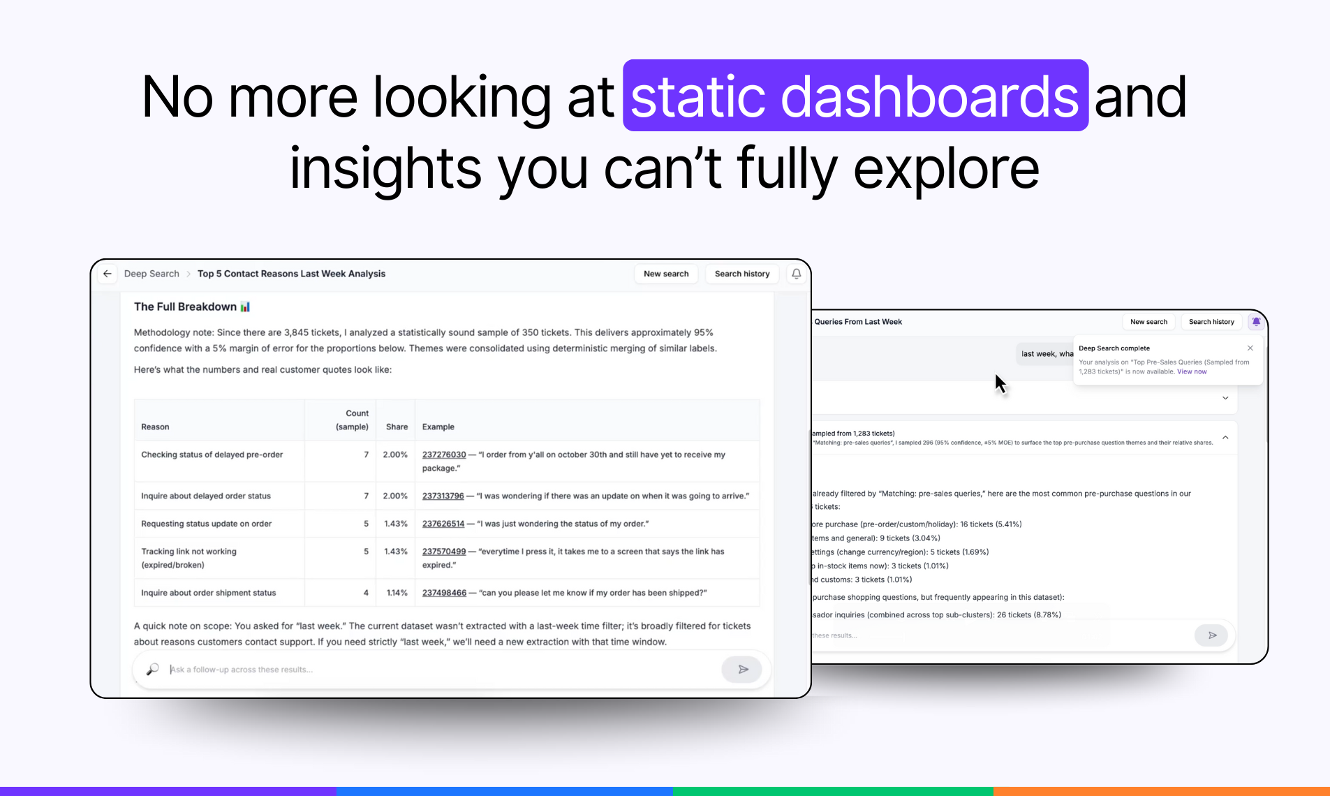 They are adding dynamic charts, trend visualizations, and anomaly alerts to Deep Search. If there is something specific you want to analyze or ask from your support tickets, tell them. They are shaping the roadmap based on what brands need most.