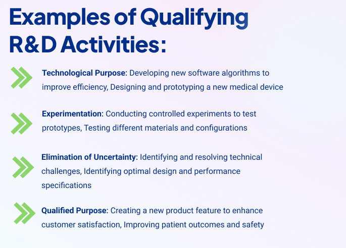 To further illustrate the four-part test, here are some examples of activities that typically qualify for R&D credits: