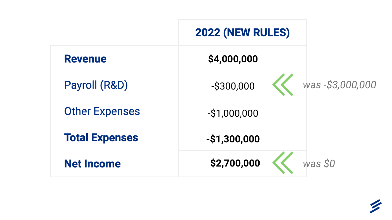 This is because Section 174 requires that R&D expenses are not immediately deducted but are spread out over a period of time (5 years for US; 15 years for International).