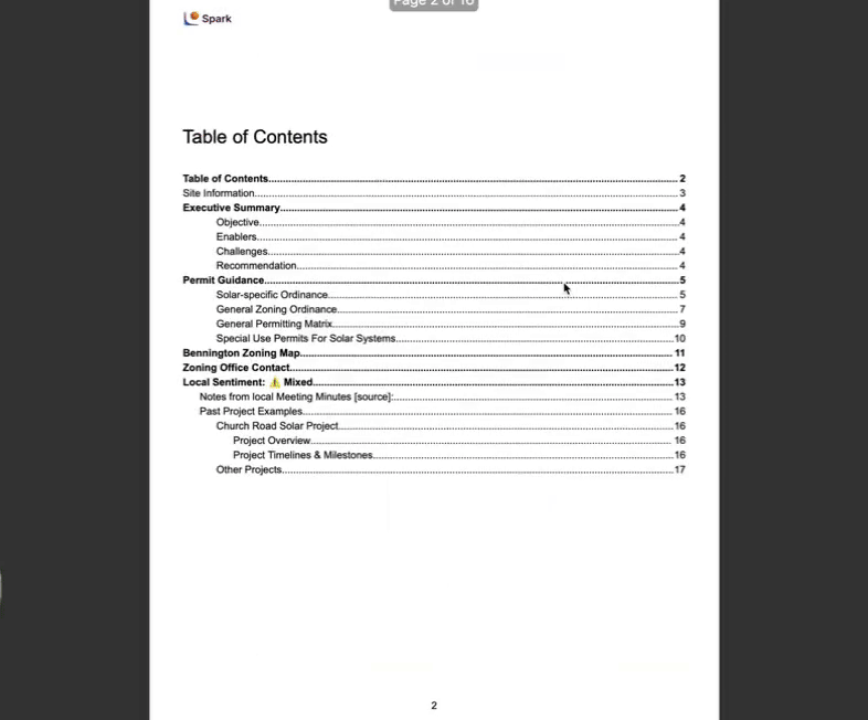 TL;DR: With Spark AI, developers can instantly identify permitting requirements and fatal flaws in seconds, not weeks. They have parsed more than 1 million zoning, permitting, town hall meetings, and project documents. Their systems ingest PDFs, maps, land use codes, moratoria, interconnection queues, and local websites across thousands of jurisdictions.
