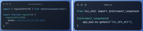 - If you’re building with Vercel AI SDK, LangChain, or LangGraph, use The Context Company for observability.