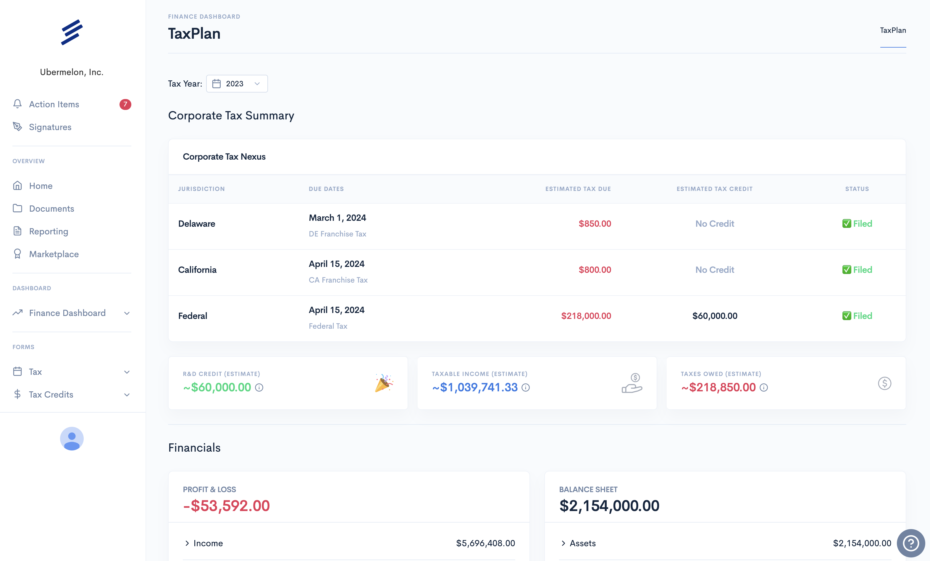 TaxPass is an annual subscription that covers your filings for the Delaware Franchise Tax, State Corporate Income Tax, and Federal Corporate Income Tax deadlines.