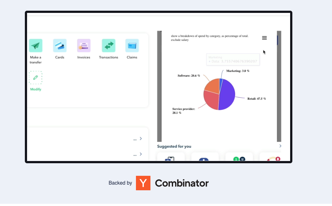 Defog is powered by large language models that can search and visualize both structured data (like SQL databases or Data Warehouses) and unstructured data (like text in call transcripts).