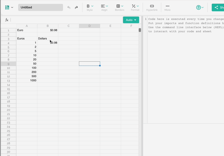 With Neptyne, you can use spreadsheet expressions like you normally would, but you can also write Python code and use its many powerful features directly in your spreadsheet. This allows you to create complex applications beyond what traditional spreadsheets can do, without needing extensive programming skills.