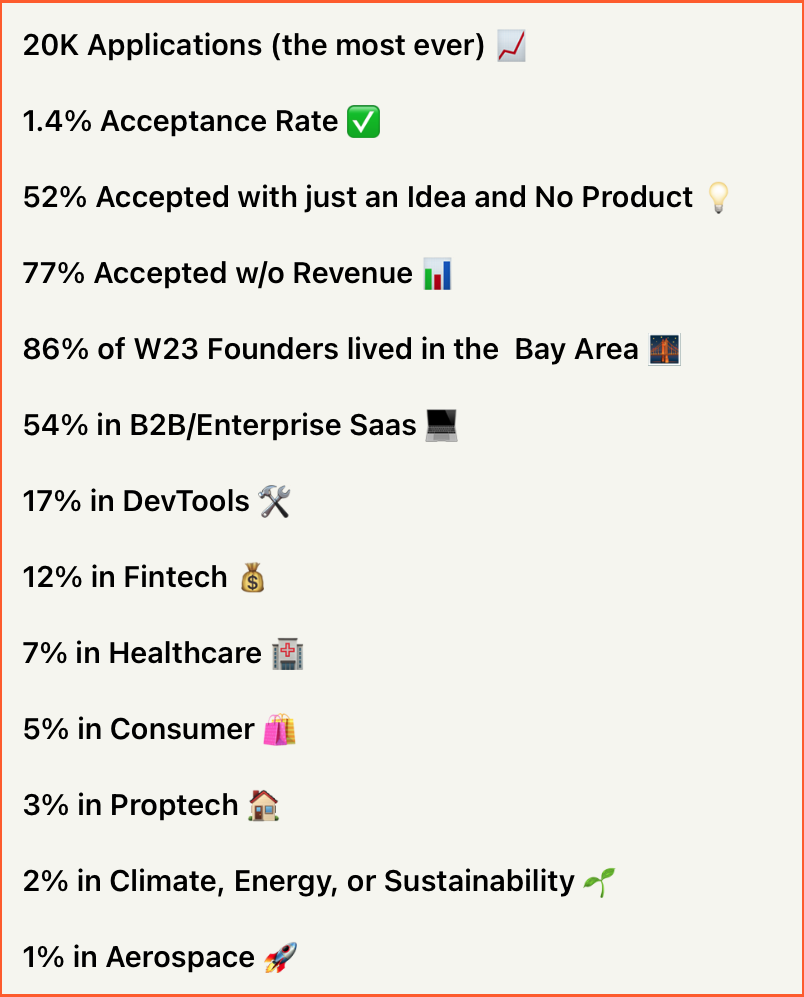 Y Combinator's W23 Stats: