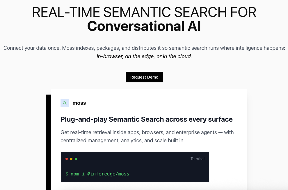 👉 Building in Conversational AI and Voice AI? Use Moss to bring real-time semantic search inside your agents to production. Book a demo here.