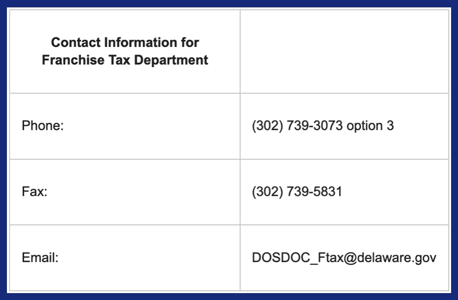 For any questions or concerns regarding Delaware Franchise Tax, individuals can contact the Delaware Franchise Tax department directly.