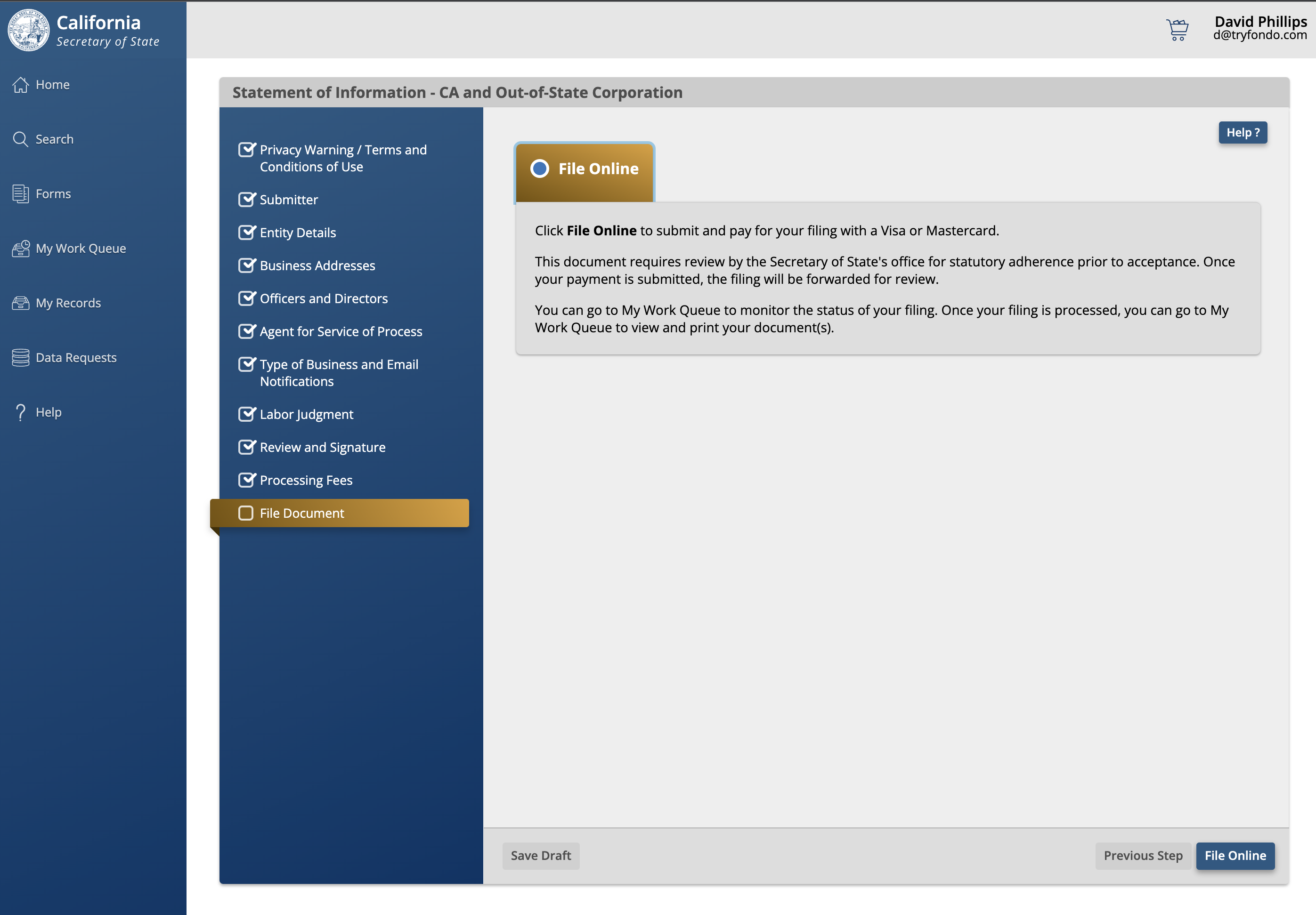 Your registered agent should handle this filing for your company. Startups who are headquartered in California, typically have their founder as the registered agent. Startups who are outside of California, but have an employee in California, for example, will use a registered agent service to register the company to do business in California (we recommend Middesk for this).